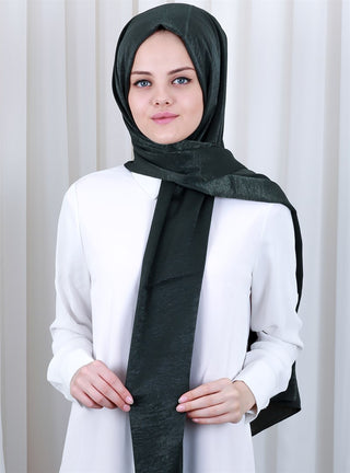 %100 Vual İpek Şal Desenli Koyu Yeşil Gold Tonlu 70X190