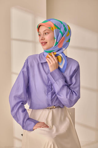 Viskon Aura Eşarp Eflatun Zincir Desenli Tok Duruşlu 90X90