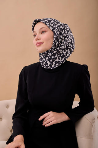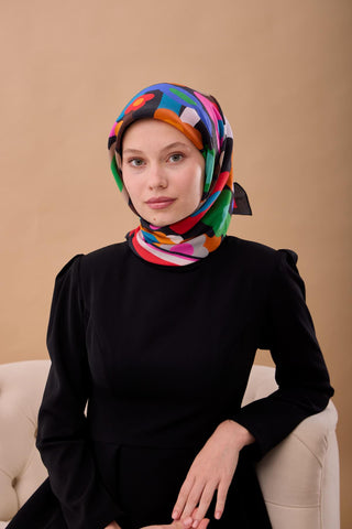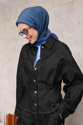 Viskon Aura Eşarp Koyu Lacivert Zincir Desenli Tok Duruşlu 90X90