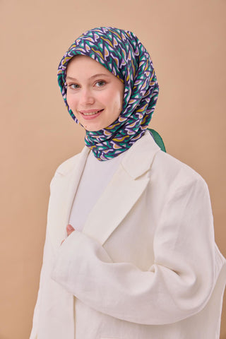 Viskon Aura Eşarp Zümrüt Yeşili Zincir Desenli Tok Duruşlu 90X90