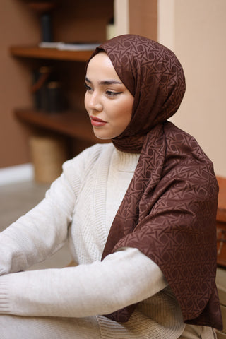 Deluxe Şal Acı Kahve Jakarlı Yüzey Viskon Karışımlı Tok Duruşlu 75X190