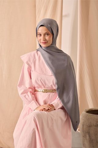 Deluxe Şal Gri Jakarlı Tok Duruşlu Viskon Karışımlı 75X190