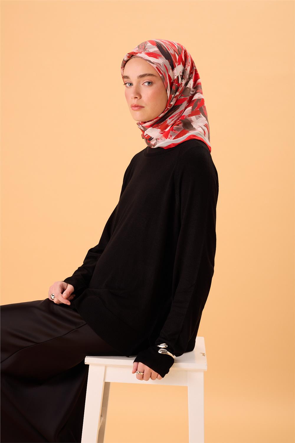 Organik pamuk ipek dokuma yapısıyla üretilen bu eşarp modeli, doğal liflerden elde edilen yumuşak ve nefes alan yapısı sayesinde gün boyu konforlu bir kullanım sunar. Kaymaz dokulu yüzeyi başta sabit durur, akışkan duruşu ise eşarbın doğal formunu korumasına yardımcı olur.