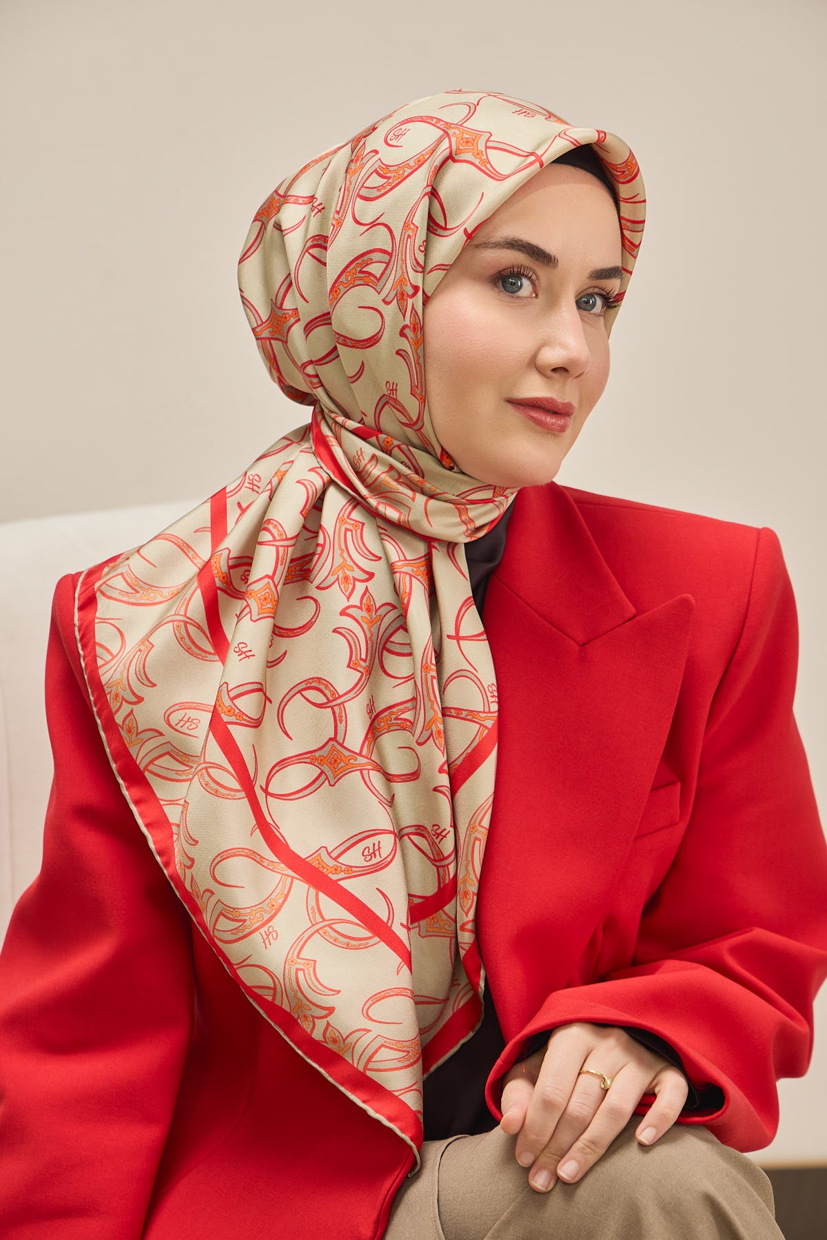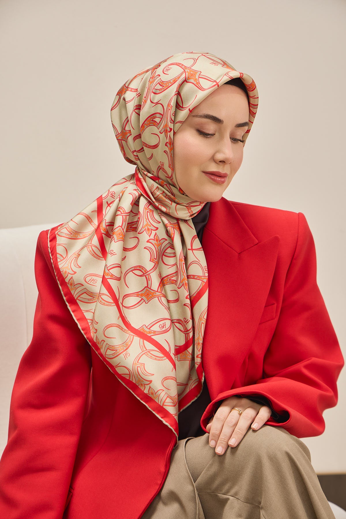 Yeşil bej, parlak kırmız tonlarının doğal uyumunu yansıtan bu twill ipek eşarp, tok duruşlu yapısıyla gün boyu formunu korumak isteyen kullanıcılar için ideal bir seçimdir. Twill dokumasının sunduğu kaymaz kumaş özelliği, eşarbın başta kolay şekil almasını sağlar ve gün içinde kayma hissini en aza indirir.