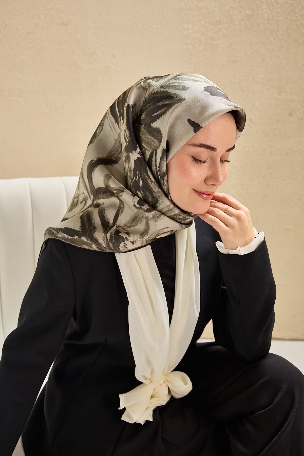 Gri, antrasit, vizontonlarının doğal uyumunu yansıtan bu twill ipek eşarp, tok duruşlu yapısıyla gün boyu formunu korumak isteyen kullanıcılar için ideal bir seçimdir. Twill dokumasının sunduğu kaymaz kumaş özelliği, eşarbın başta kolay şekil almasını sağlar ve gün içinde kayma hissini en aza indirir.