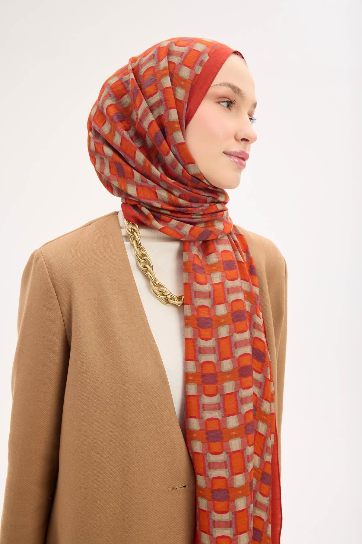 Urban Hours Blok Desen Kiremit Kırmızı Mayda Şal 190x70