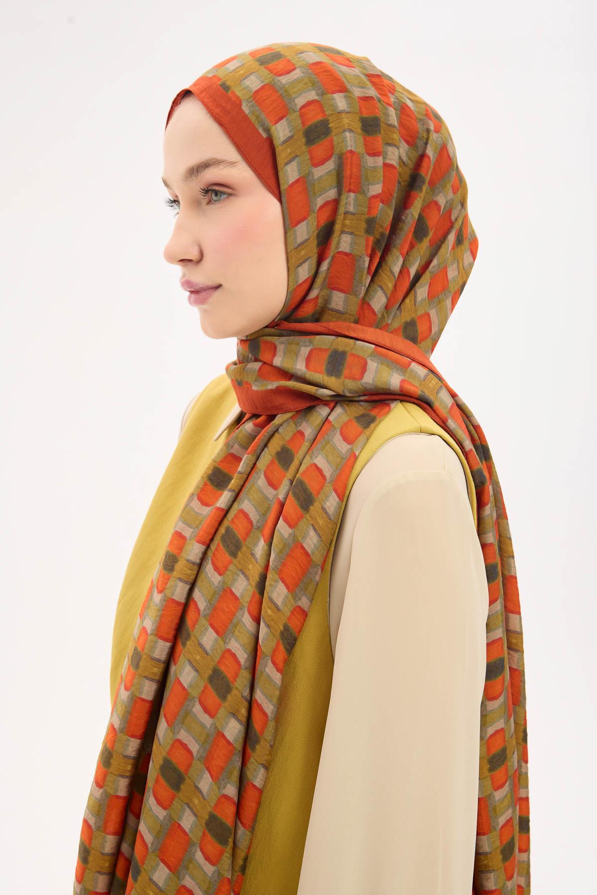 Urban Hours Blok Desen Pas Rengi Mayda Şal 190x70