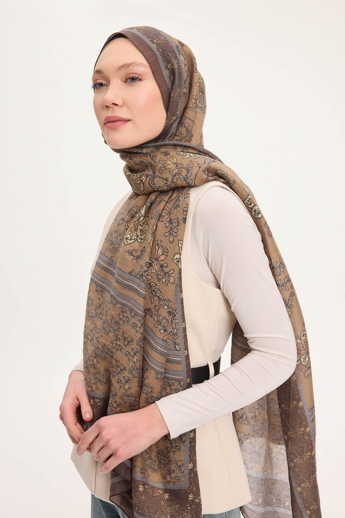 Tencel Monare Şal Acı Kahve Çiçek Desen 75x195