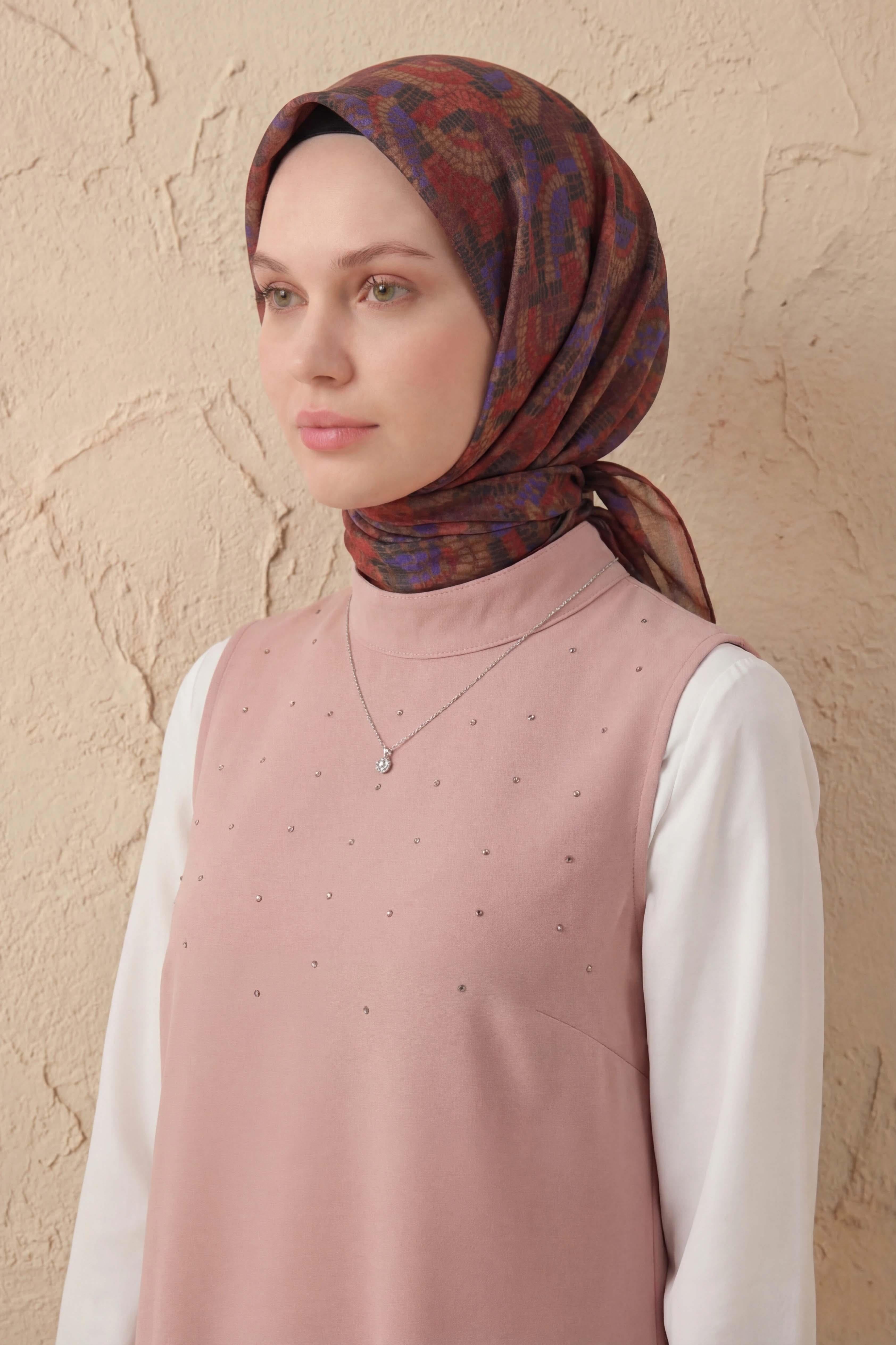 Soft Eşarp Melodi Desen Açık Kahverengi 90x90