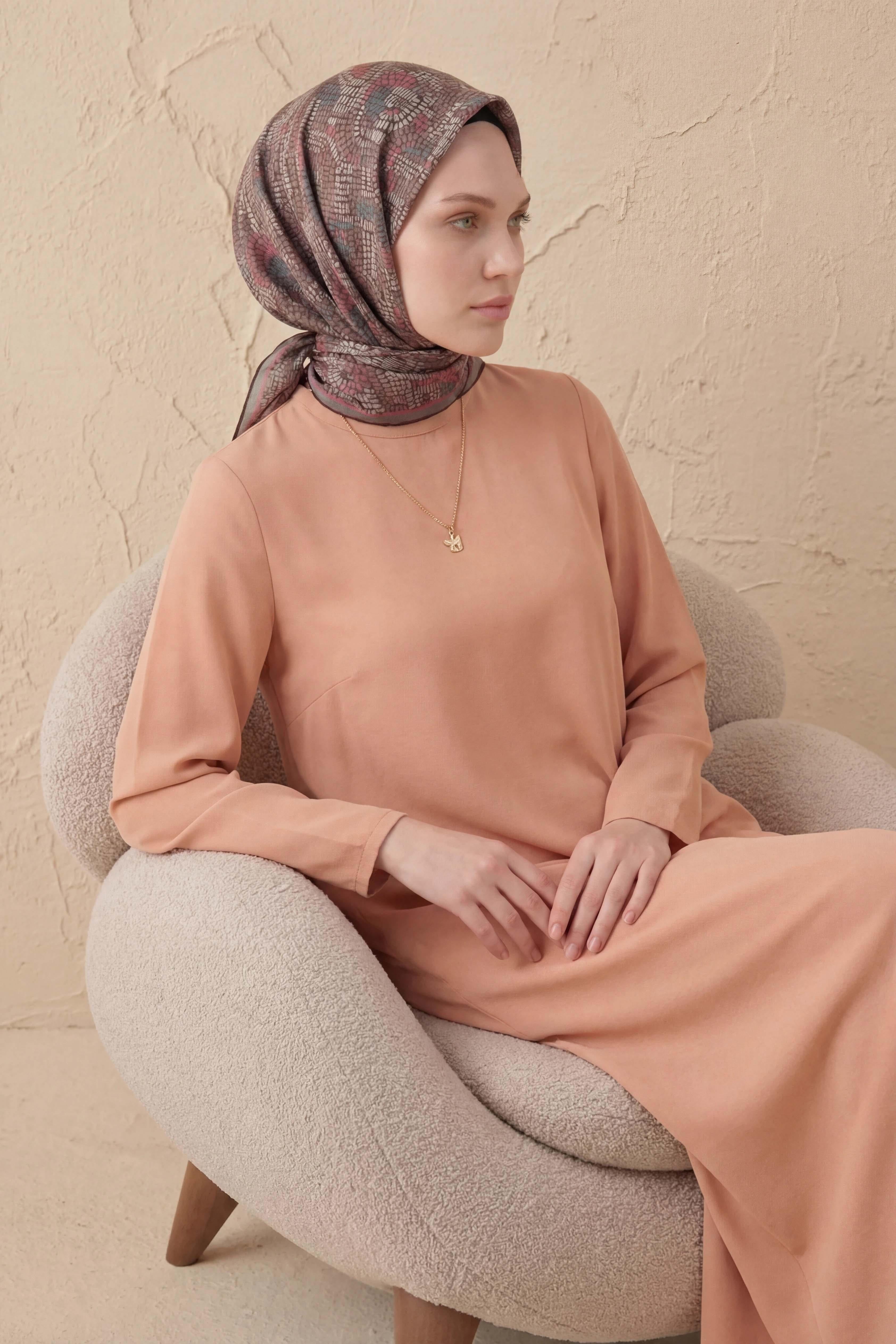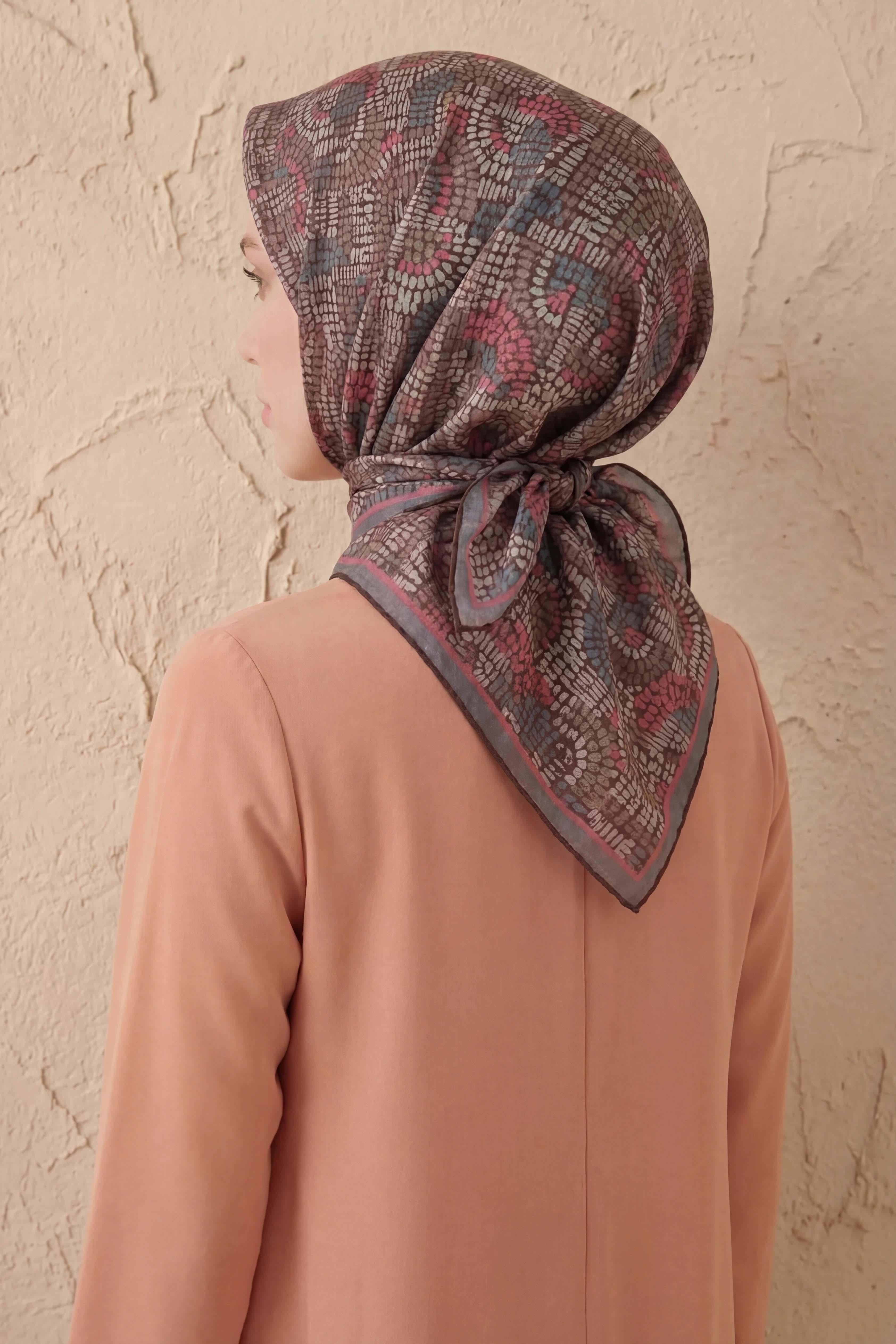 Soft Eşarp Melodi Desen Kahverengi 90x90
