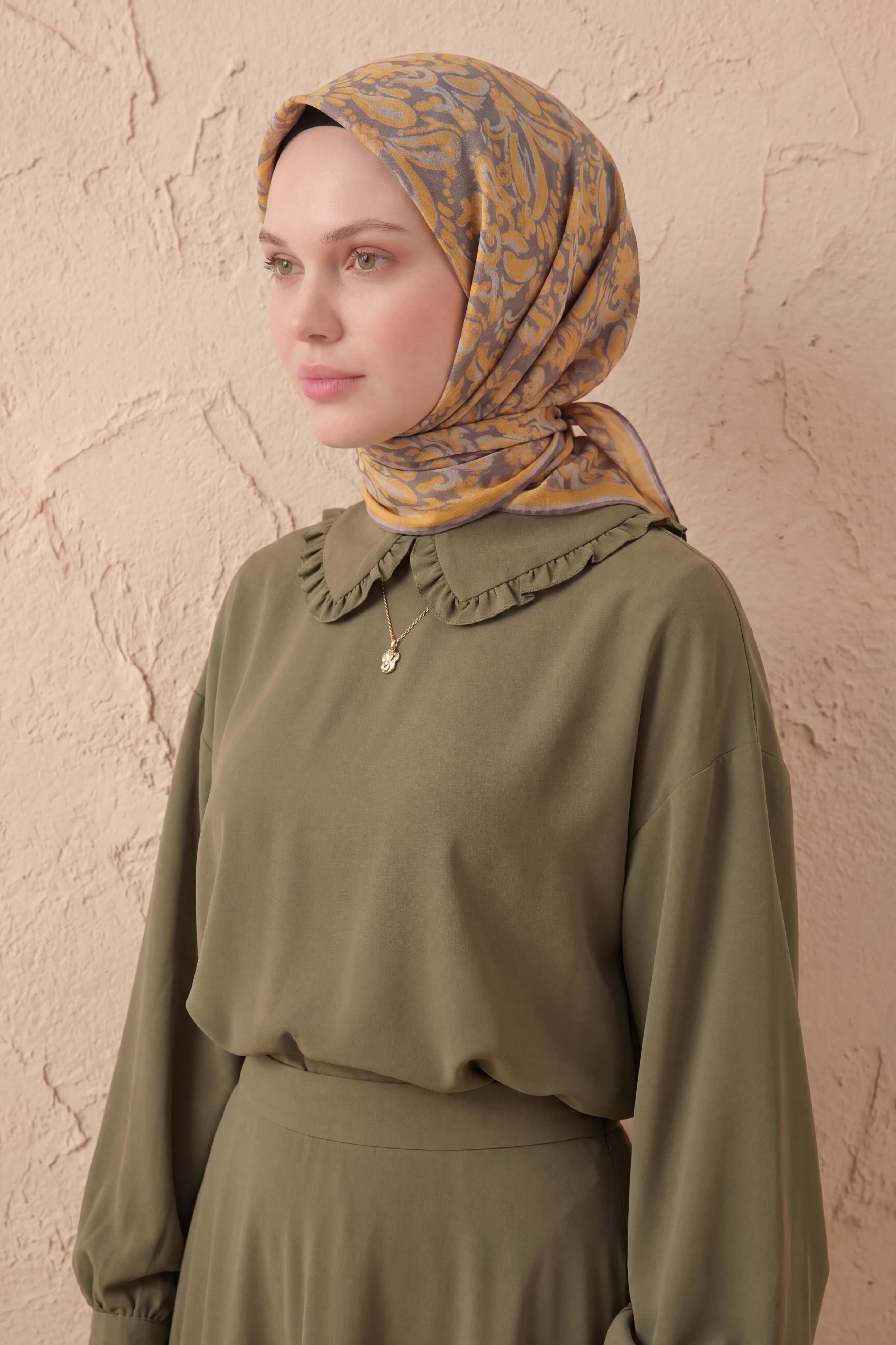 90x90 cm ölçüsü, klasik bağlama stilleri için ideal olup günlük kullanım, ofis kombinleri ve mevsim geçişlerinde rahatlıkla tercih edilebilir. İnce pamuk polyester eşarp yapısı iç göstermez ve terletme yapmaz. Üretim aşamasında kansorejen madde içeren kimyasallar kullanılmamıştır.