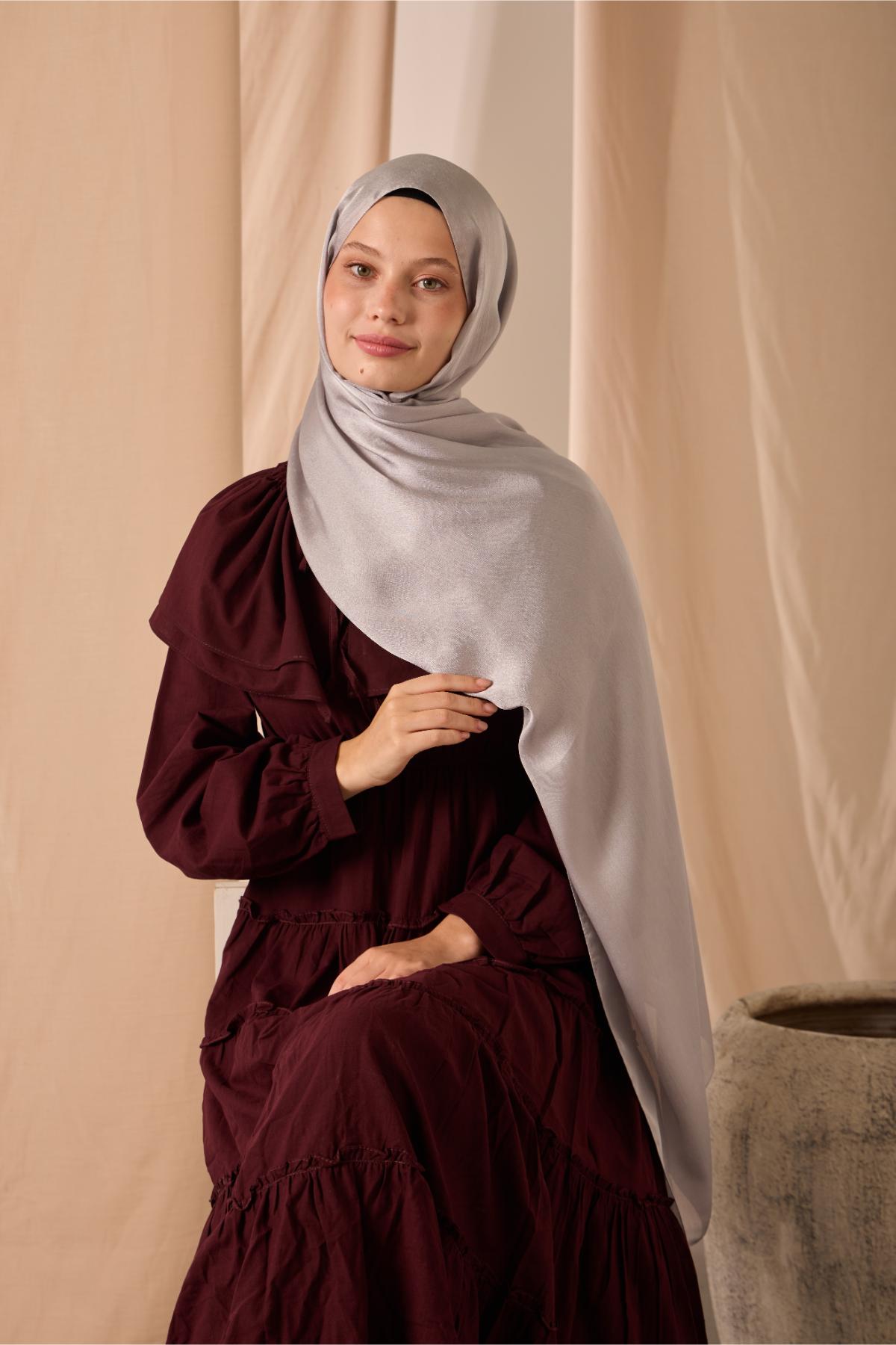 Janjan Şal Tek Taraflı Gümüş Kendinden Çizgi Dokulu Parlak Yüzeyli 75X190