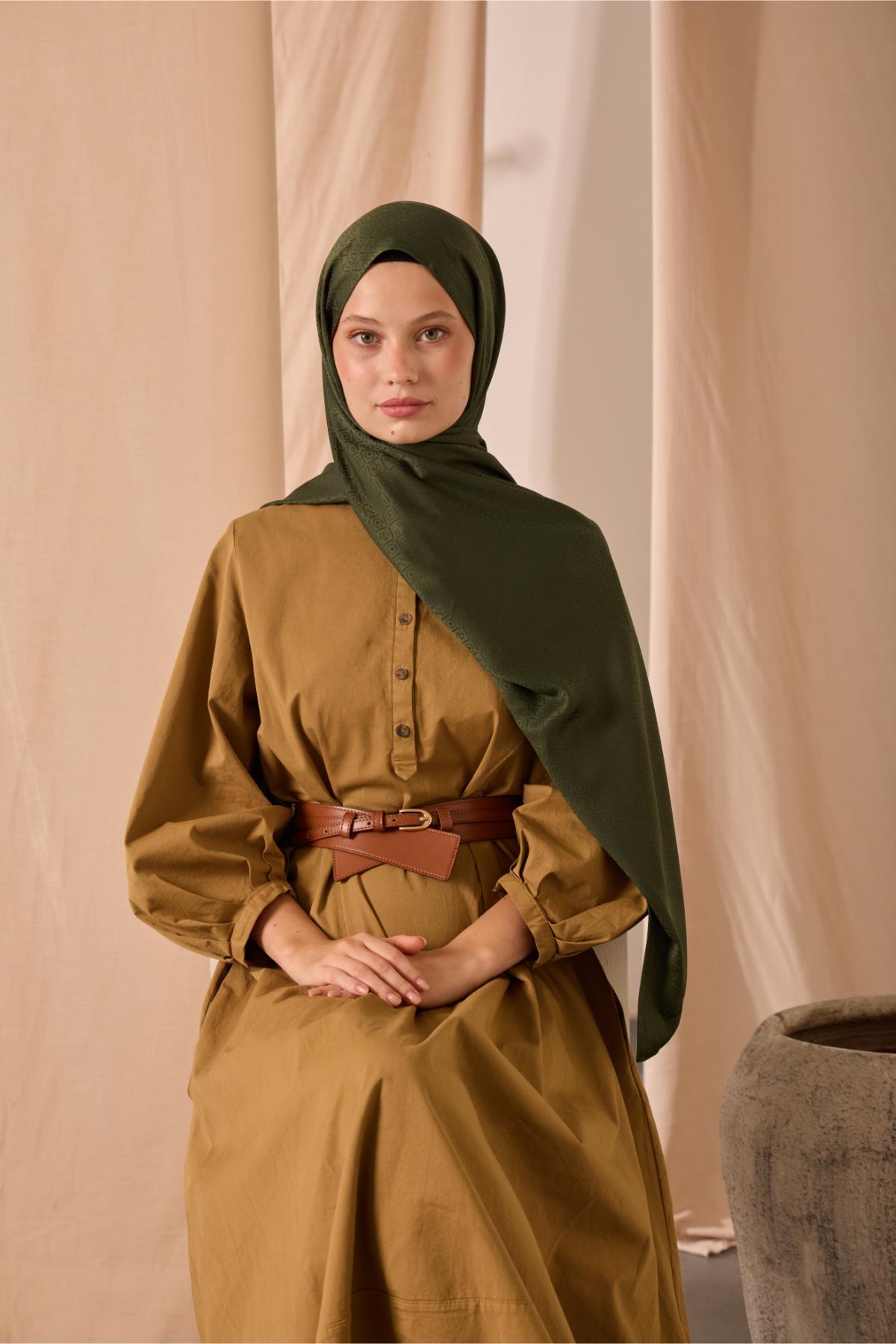 Deluxe Şal Çam Yeşili Jakarlı Tok Duruşlu Viskon Karışımlı 75X190