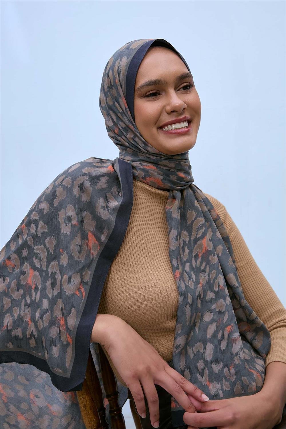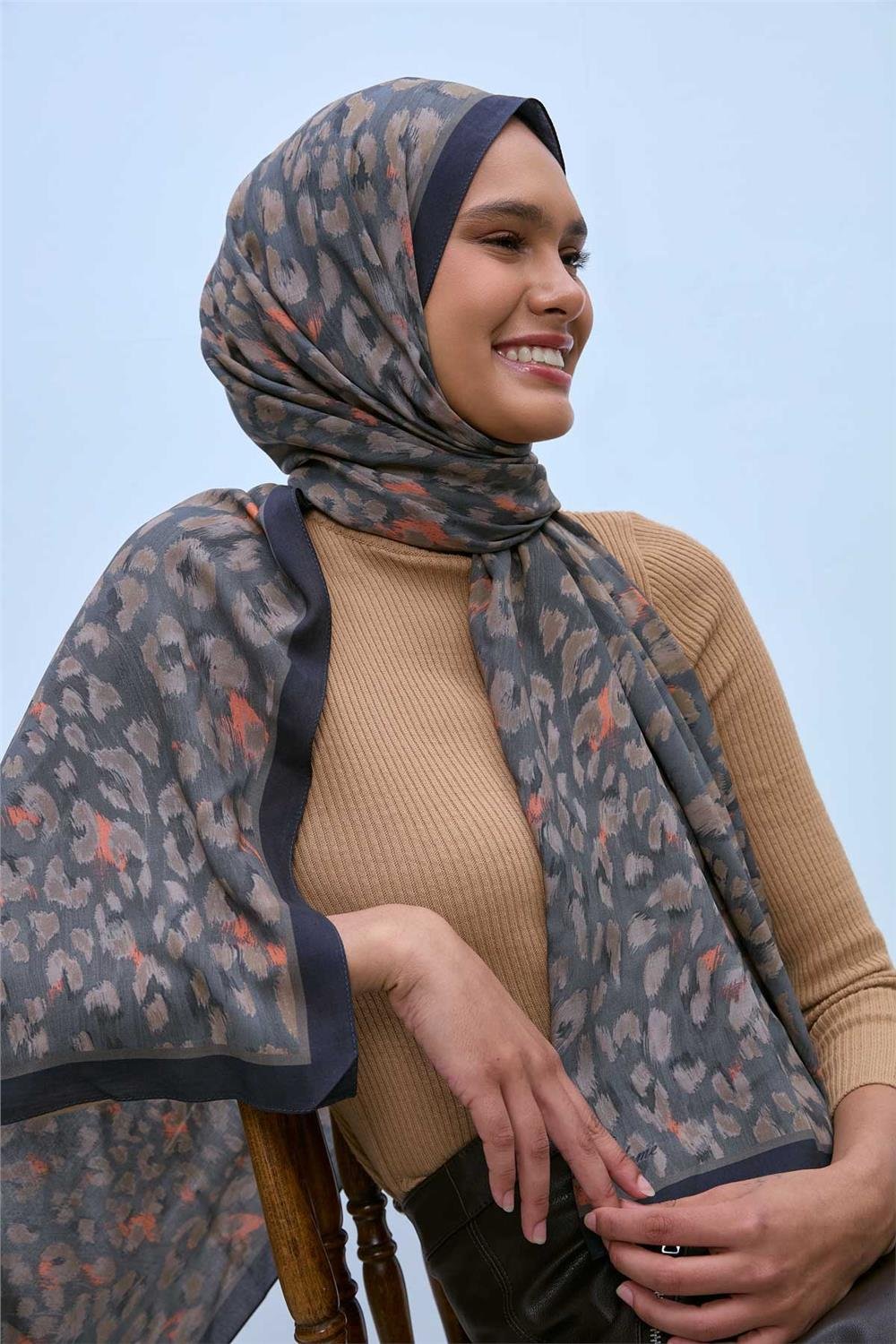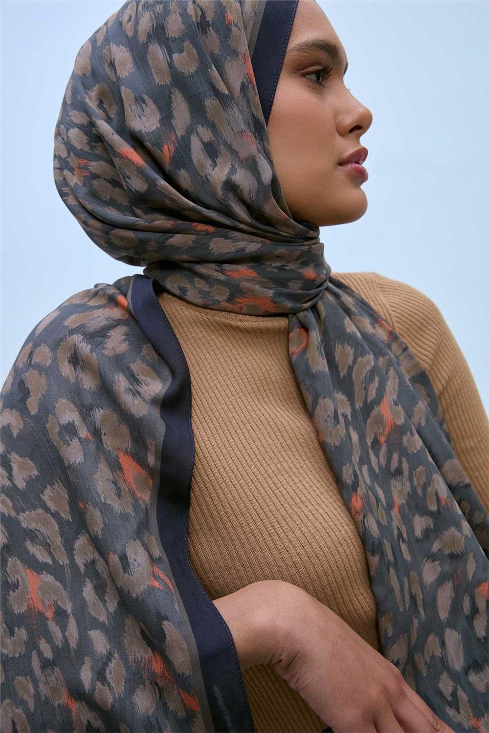 Eco Viscose Şal Gri Vizon Turuncu Siyah Leopar Desenli Nefes Alan 90X200