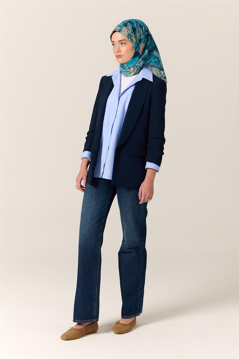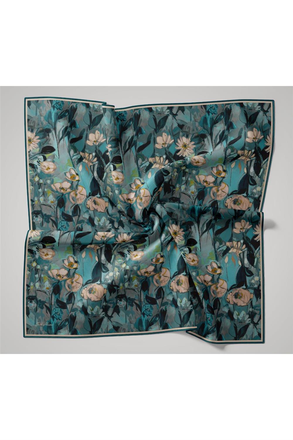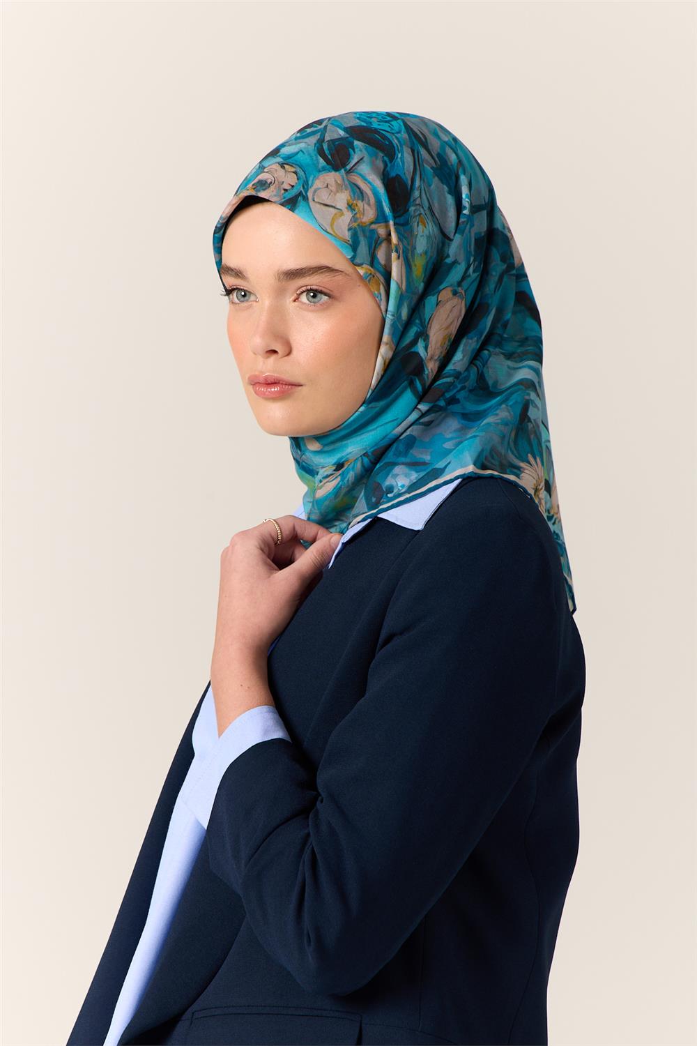 İnce Pamuk Soft Eşarp Gök Mavi-Bebe Mavi Desenli Kaymaz Dokulu Tok Duruşlu 90X90