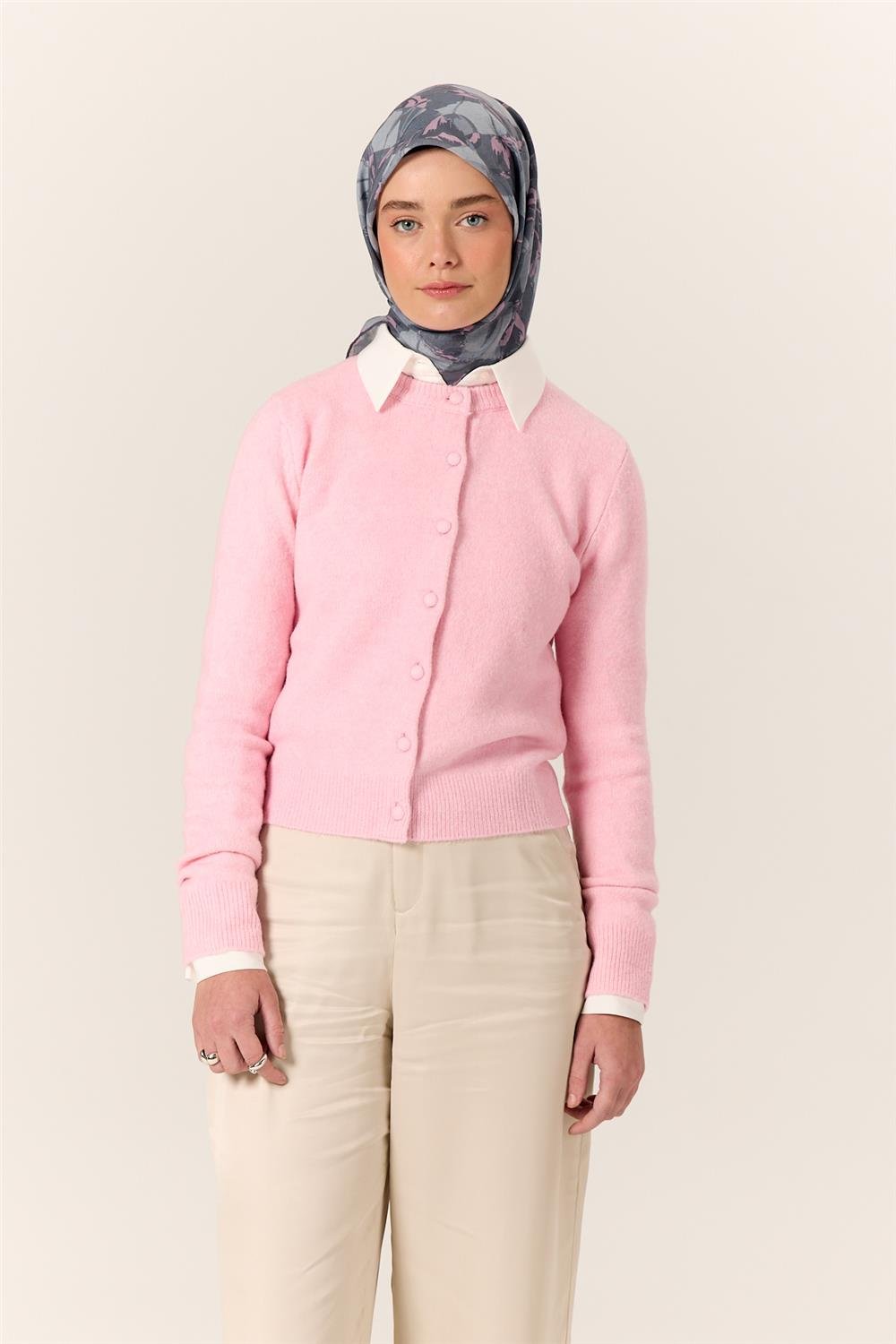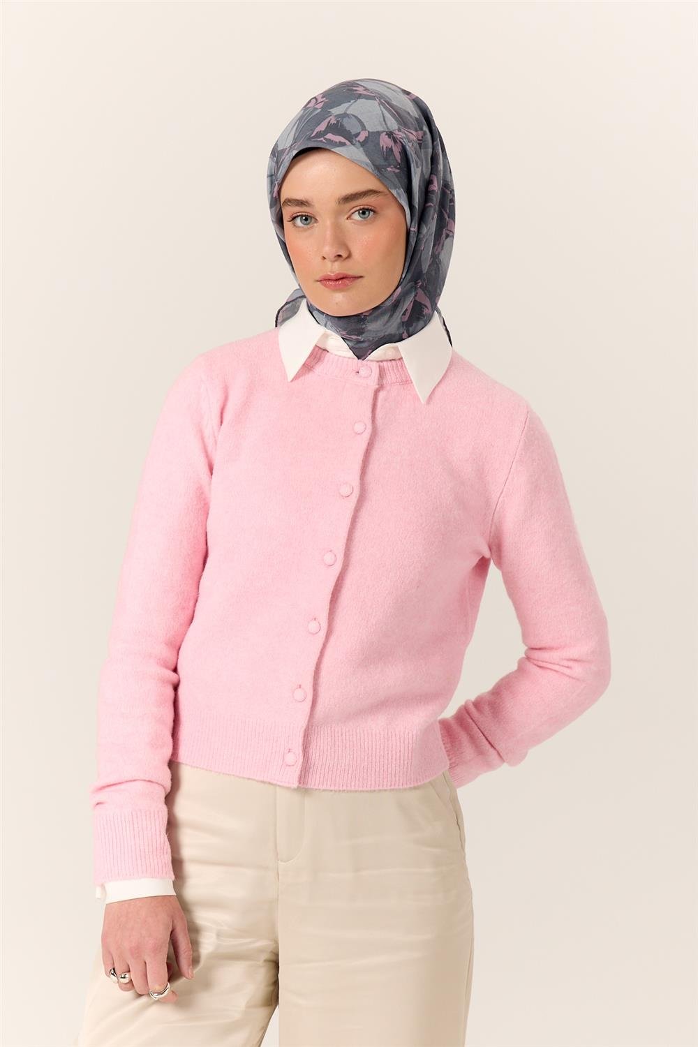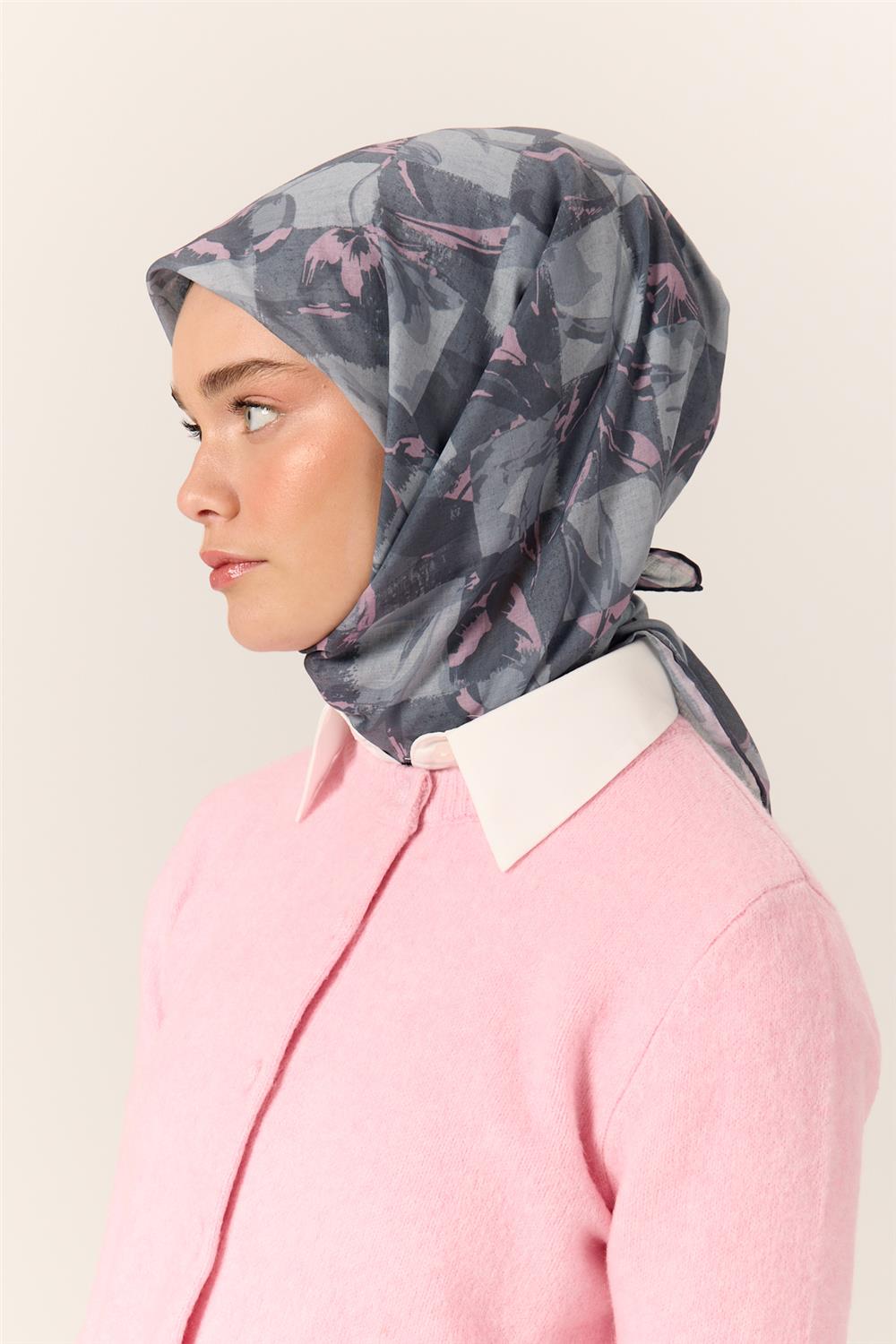 Pamuk soft eşarp modelleri arasında açık ve dengeli renk geçişleriyle öne çıkan bu ürün, kaymaz dokulu yüzeyi sayesinde gün boyu başta sabit bir kullanım sunar. Gri, gümüş ve pembe tonlarının desenli yüzeyde bir araya gelmesi, açık renk kombinlerle uyumlu ve sade bir görünüm oluşturur.