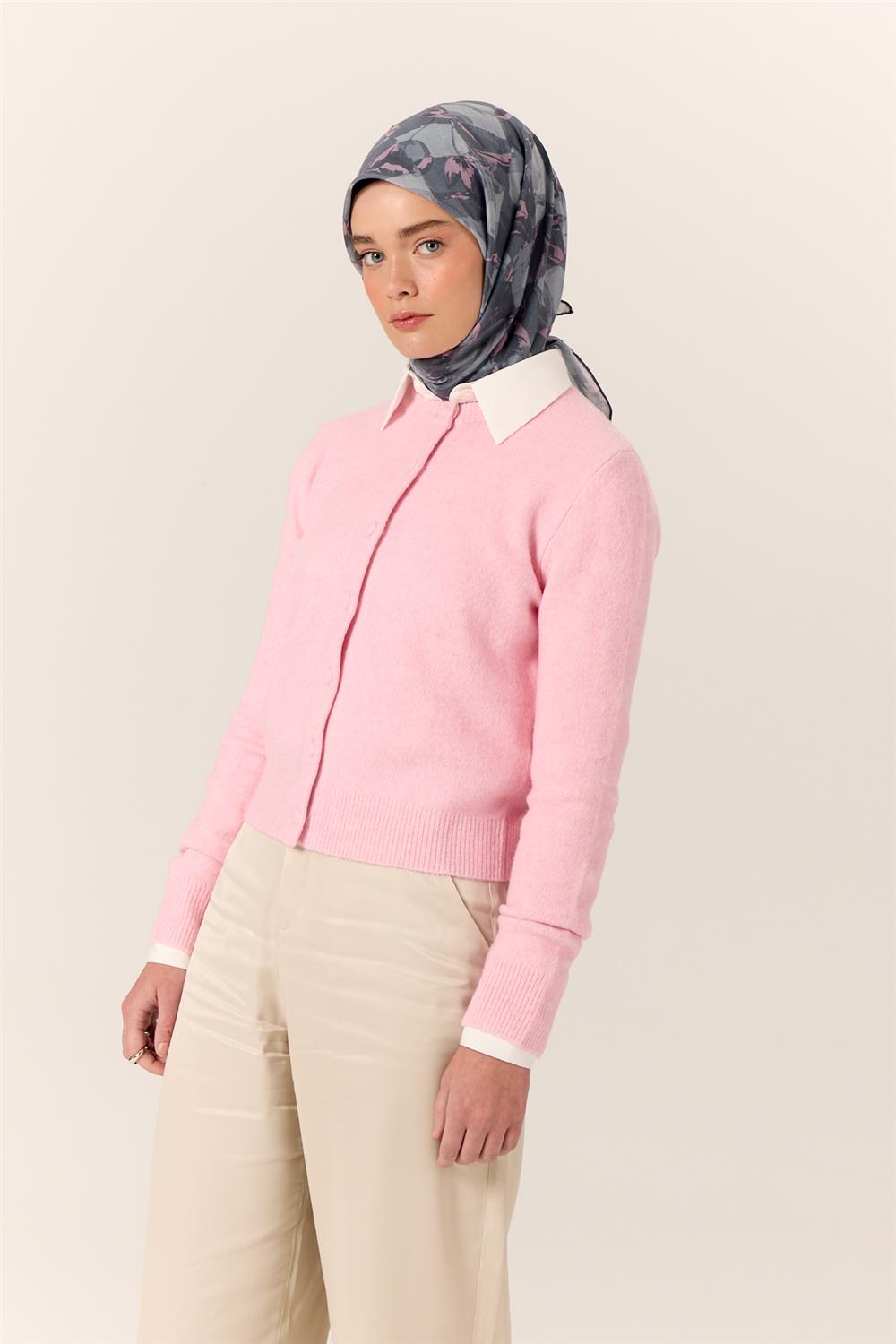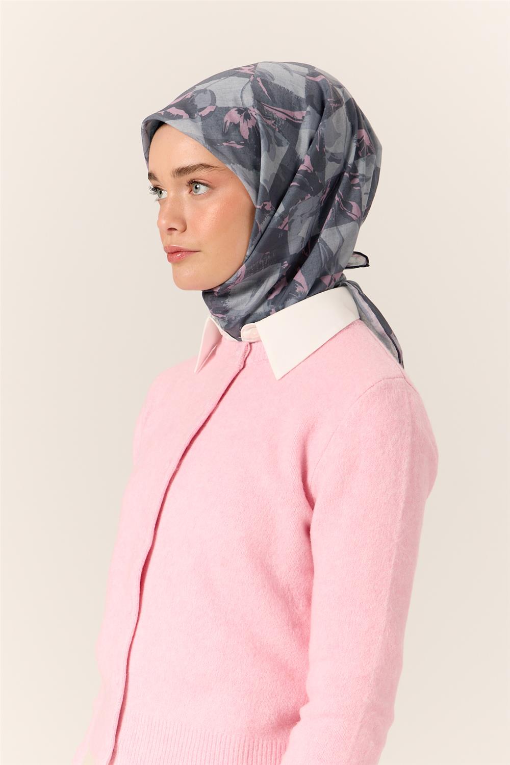 90x90 ölçülerindeki kare form, klasik eşarp bağlama stillerine uyum sağlarken modern bağlama teknikleri için de esneklik sunar. Pamuksu dokuması sayesinde ilk ütülemeden sonra uzun süre ütü gerektirmeden kullanılabilir ve kolay şekil alır.