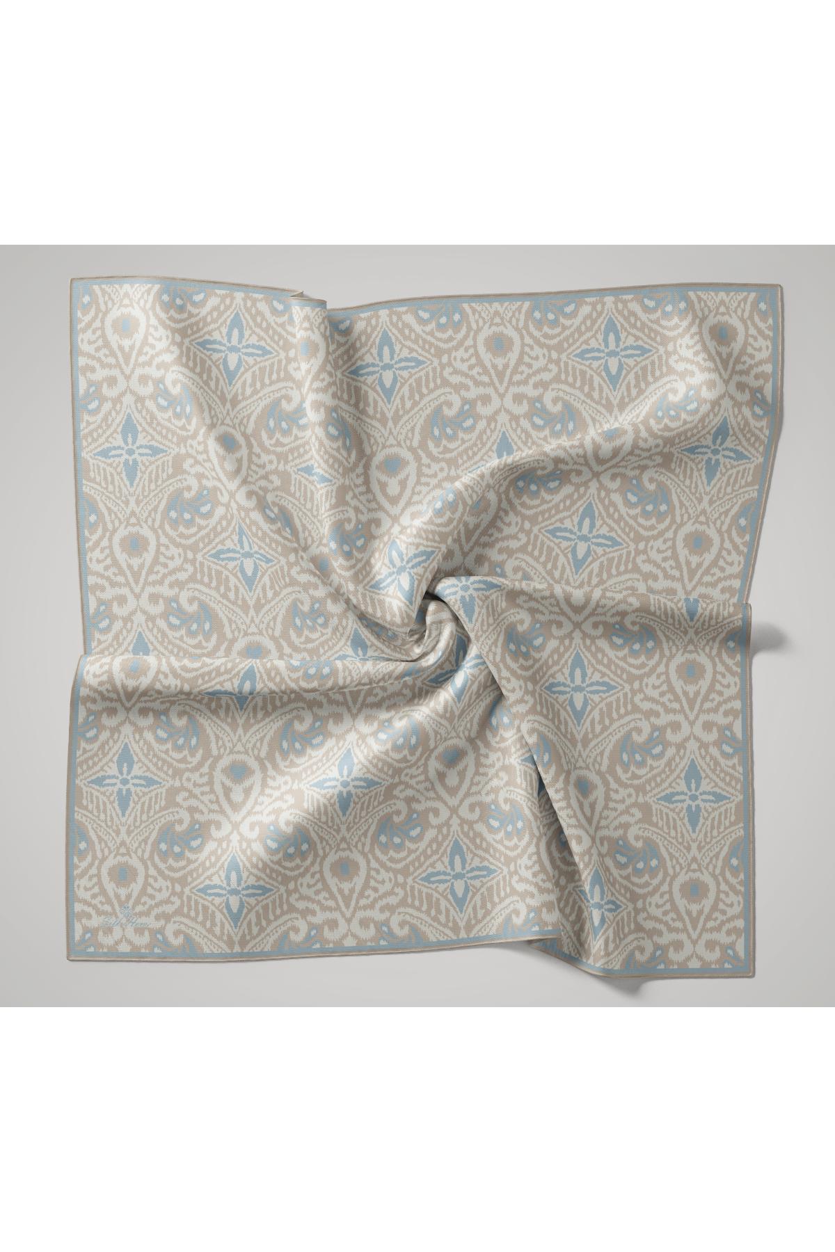 Soft dokulu pamuk eşarp, hafif yapısı ve pratik kullanımıyla günlük kombinlerde konfor sunar. İnce pamuk dokusu sayesinde başta ağırlık yapmadan rahat bir deneyim sağlar. Gümüş, vizon ve bebe mavi tonlarının dengeli desen geçişi, açık ve doğal renklerle uyumlu bir görünüm oluşturur.