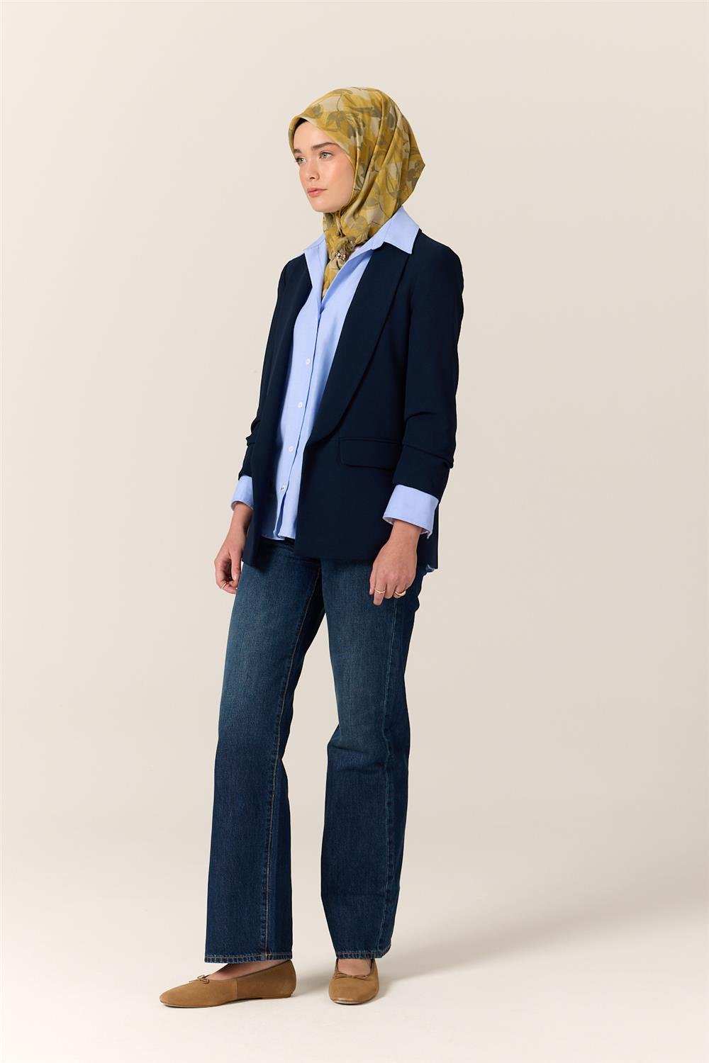 İnce Pamuk Soft Eşarp Hardal-Olive Yaprak Desenli Nefes Alan Tok Duruşlu 90X90