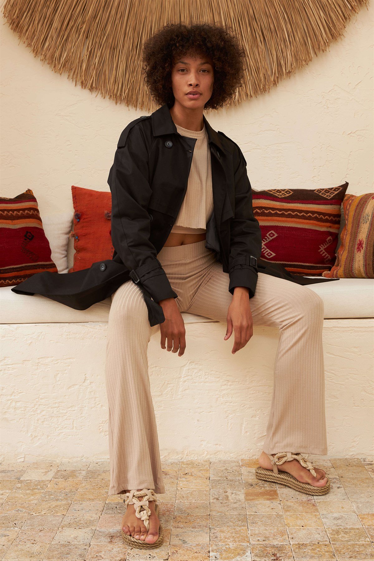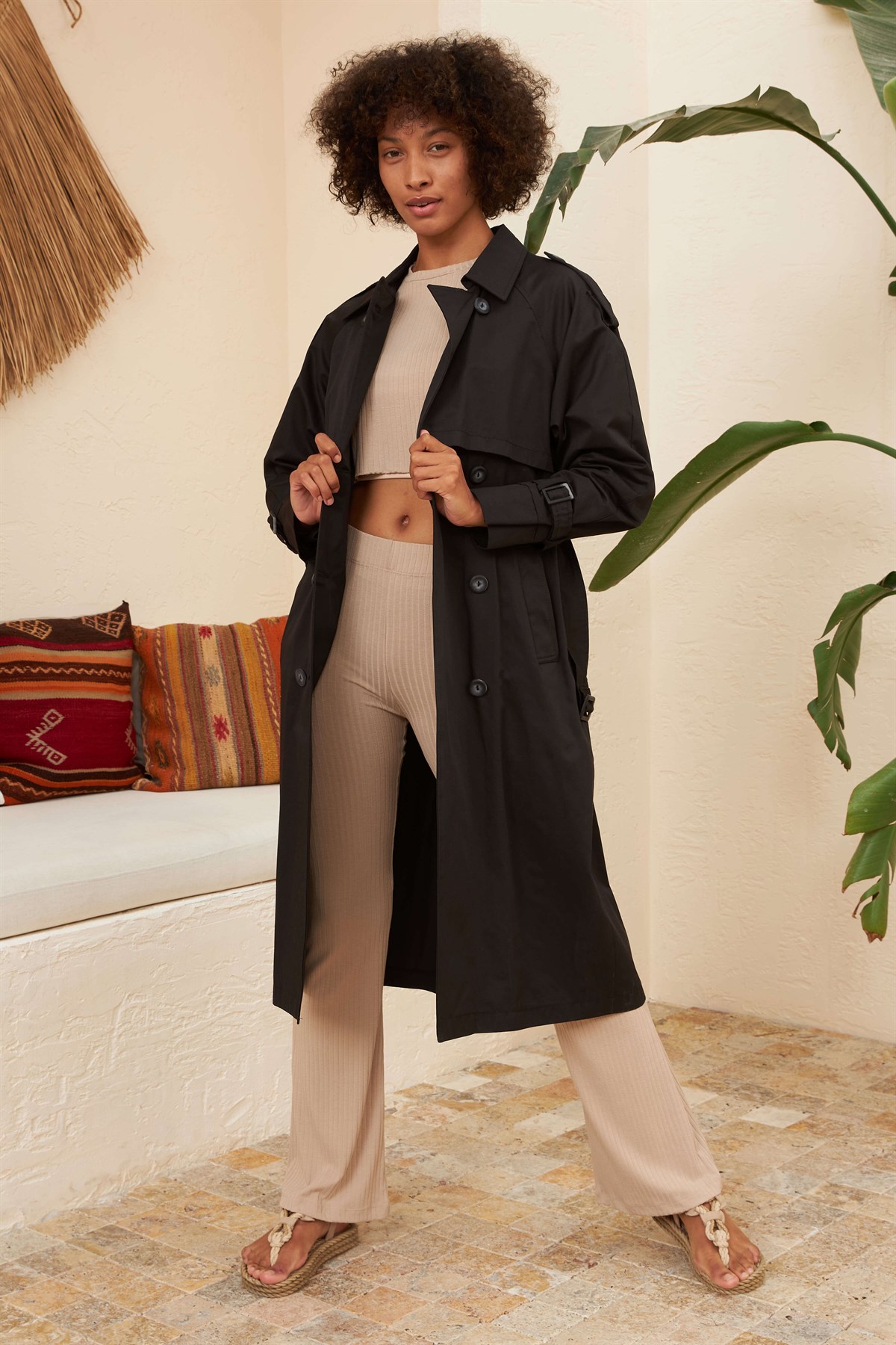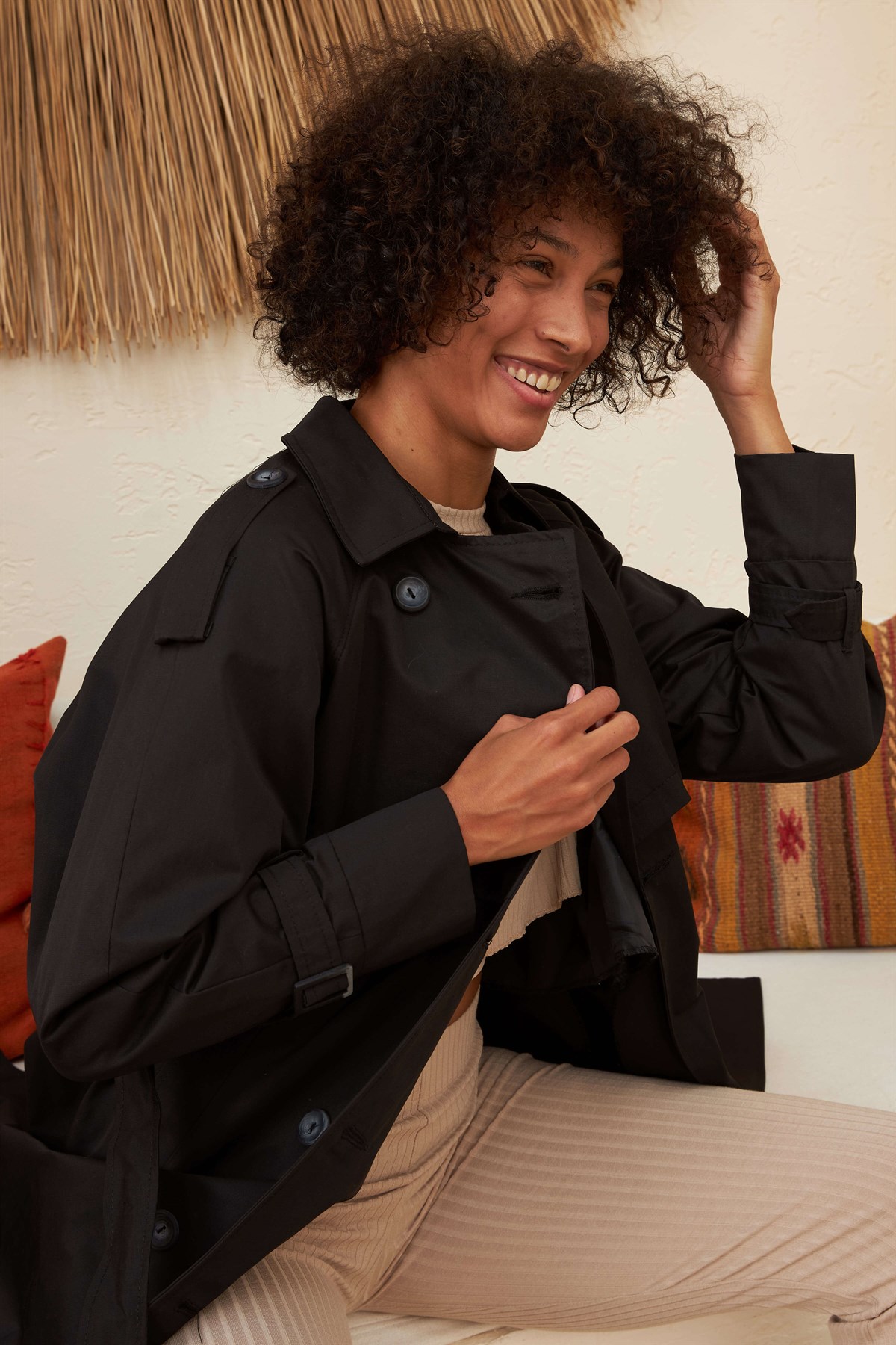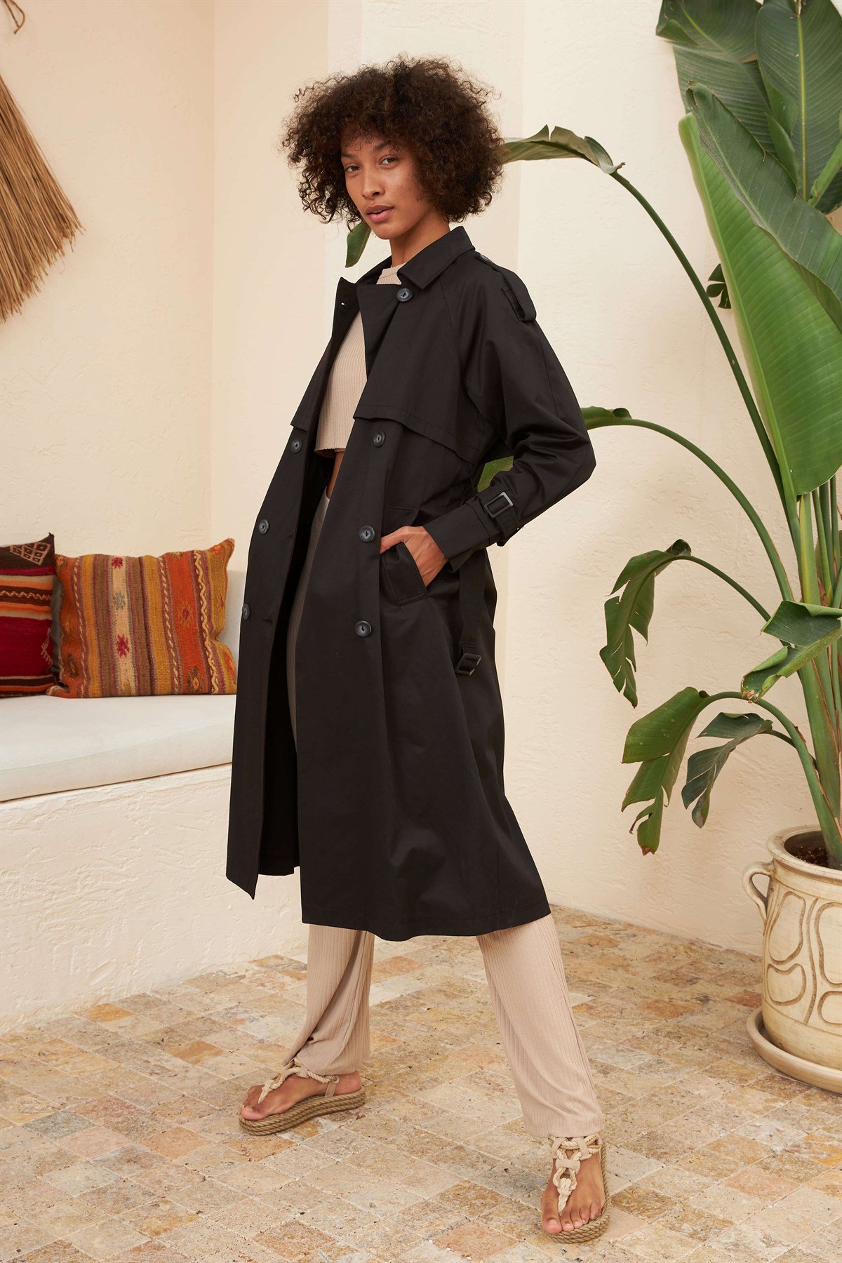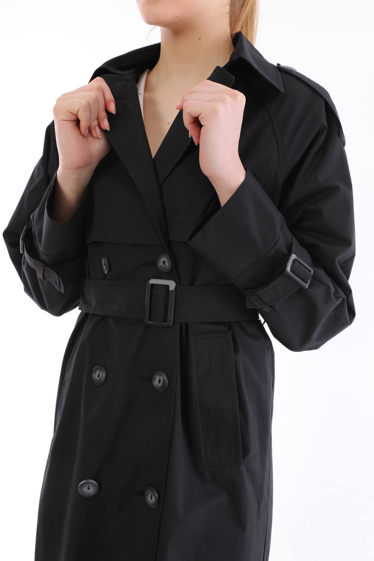 Ürün Özelliği: Seyyar Kemerli, Cepli, Çift Düğmeli, İç Astarlı, Kol ve Omuz Kemer Detaylı.