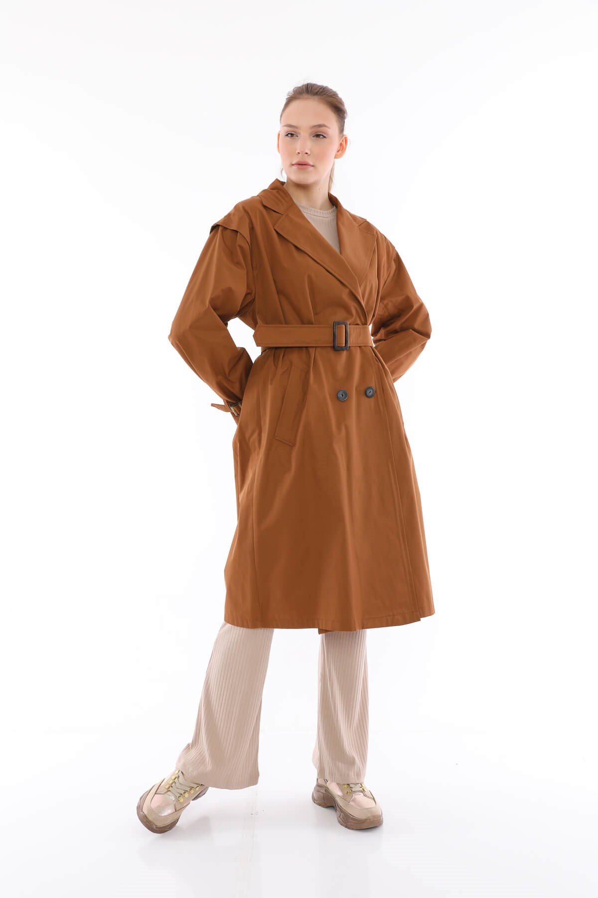 Ürün Özelliği: Seyyar Kemerli, Çift Düğme, Cepli, Astarsız, Omuz ve Kol Kemer Detaylı.