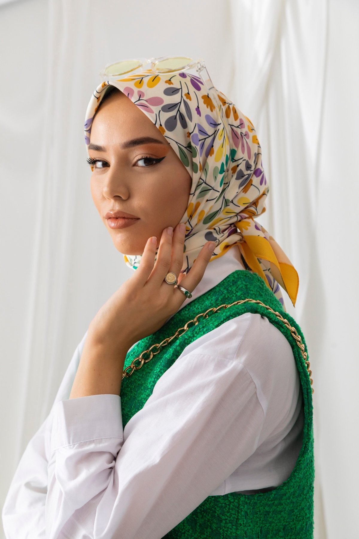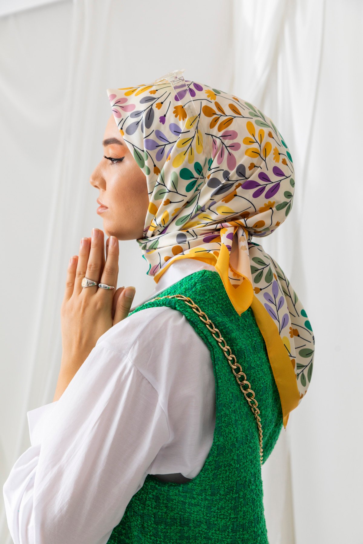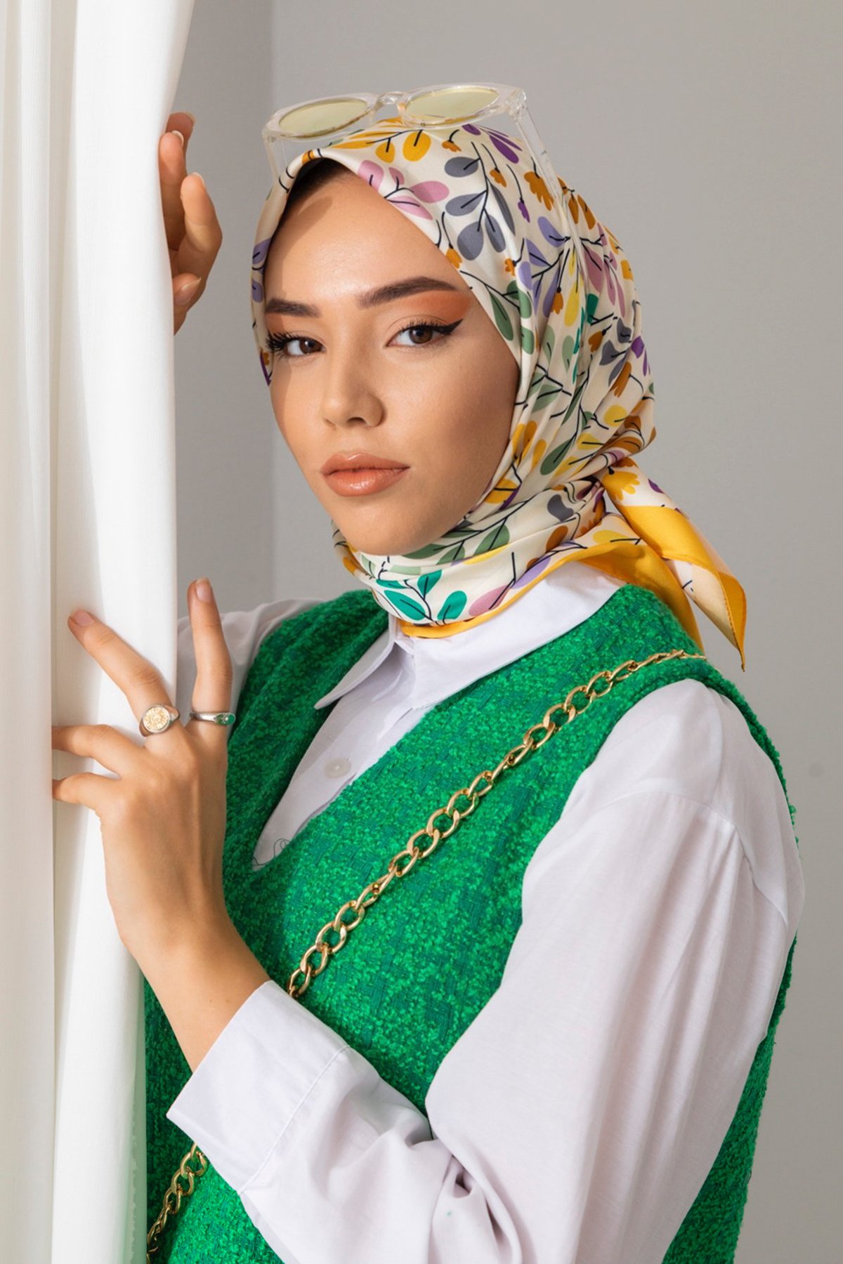 Twill dokusu kolay şekil alan yapısıyla  ipek eşarp görünümü sunar.